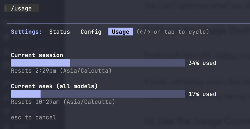 Important note: “Current Session” resets every 5 hours. Don’t panic when it suddenly drops—it’s by design.